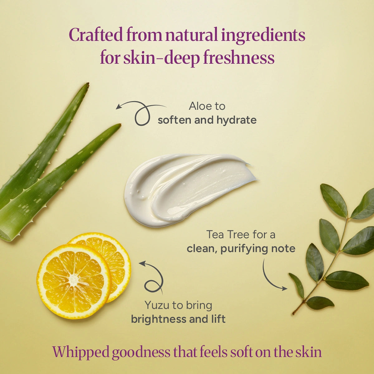 Super-concentrated and luxuriously whipped, this body butter deeply nourishes and revitalizes ultra-dry skin. Crafted with Shea Butter and Cocoa Butter for long-lasting hydration, enriched with Tea Tree Oil to clarify, Yuzu Extract to brighten, and Aloe Vera to soothe, it leaves your skin soft, supple, and glowing. Infused with superfruit extracts like Goji and Kakadu Plum, rich in antioxidants and Vitamin C, this indulgent formula protects and restores radiance with every application.